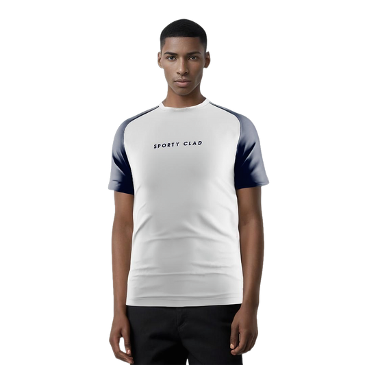 Men's Premium Cotton White / Blue Raglan Short Sleeve T-Shirt