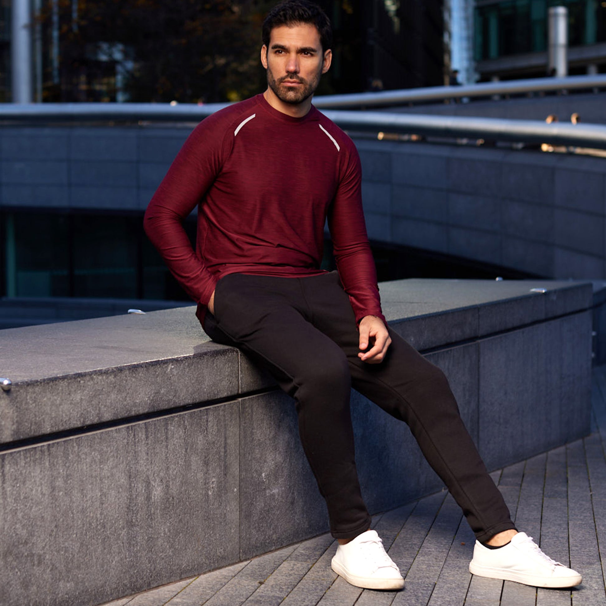 Men's Burgundy Long Sleeve T Shirt & Black Joggers Set