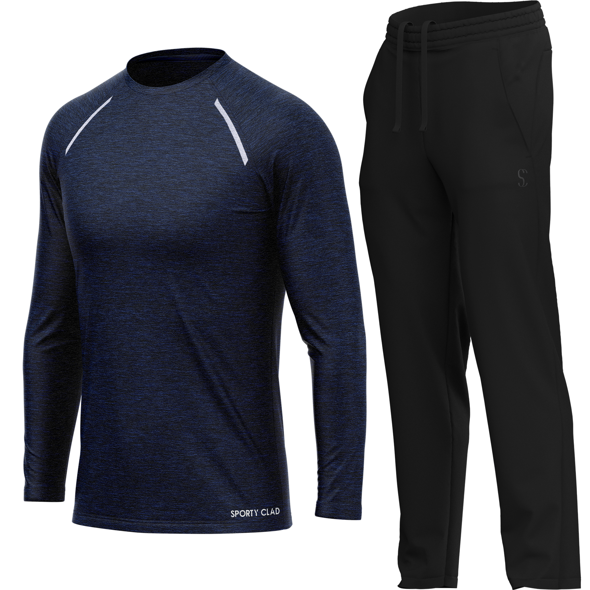 Men's Navy Blue Long Sleeve T Shirt & Black Joggers Set