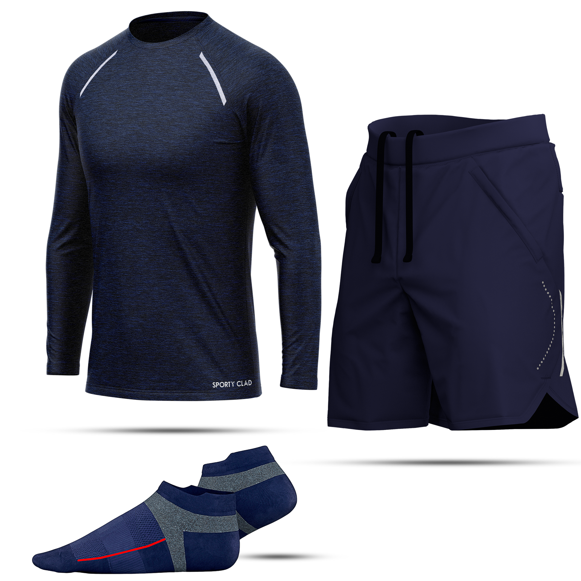 Men's Blue Long Sleeve T-Shirt, Sports Shorts & Socks Set