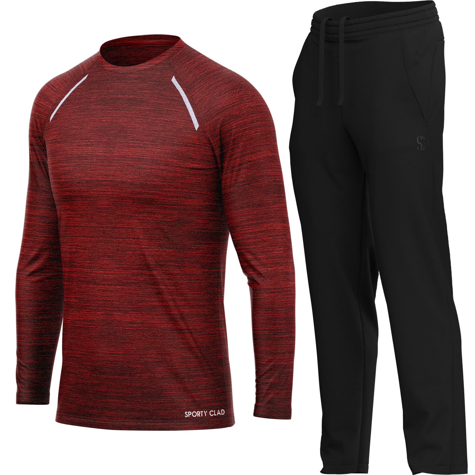 Men's Burgundy Long Sleeve T Shirt & Black Joggers Set