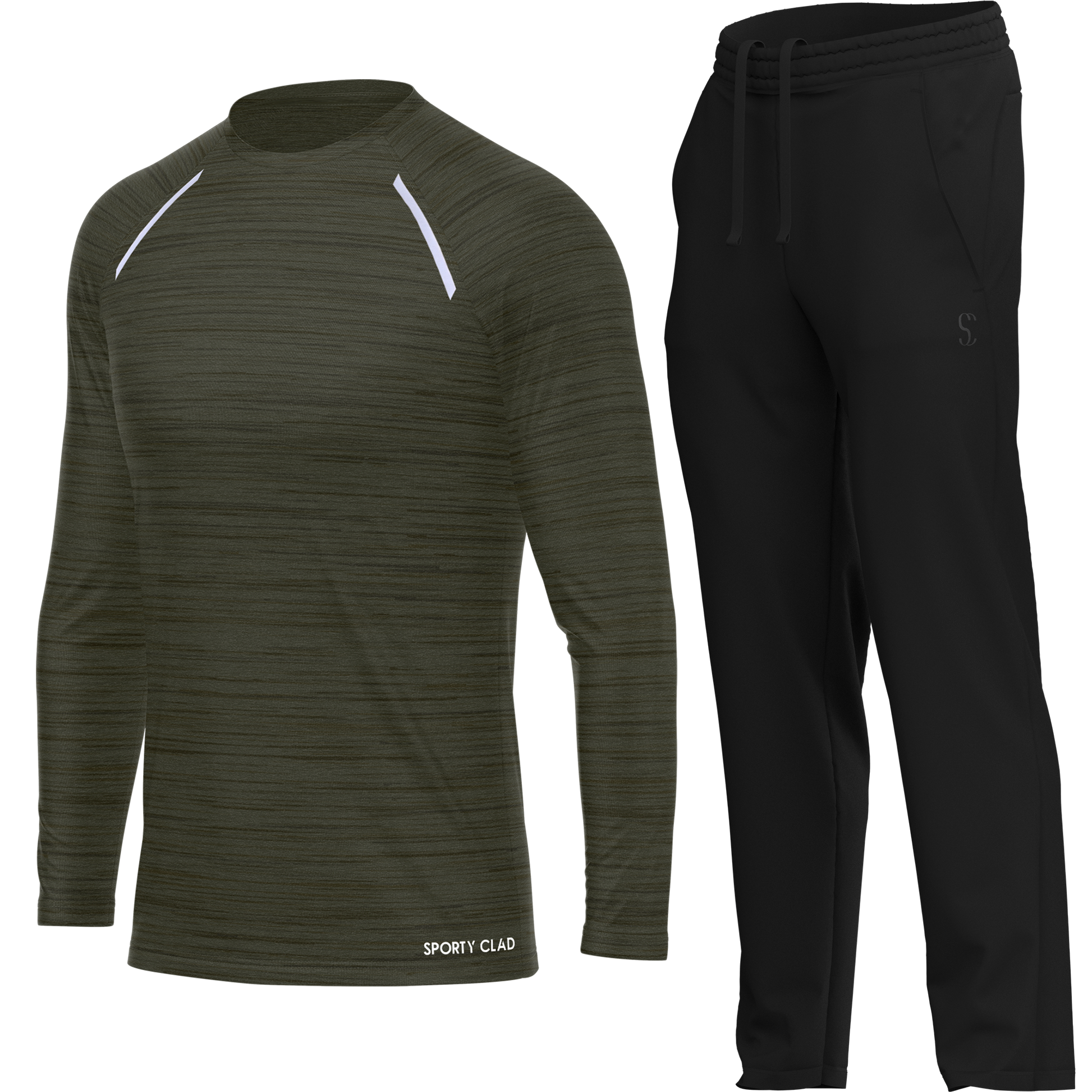 Men's Green Long Sleeve T Shirt & Black Joggers Set