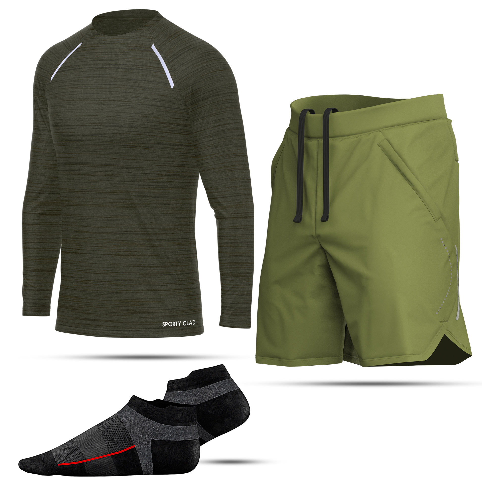 Men's Green Long Sleeve T-Shirt, Sports Shorts & Socks Set