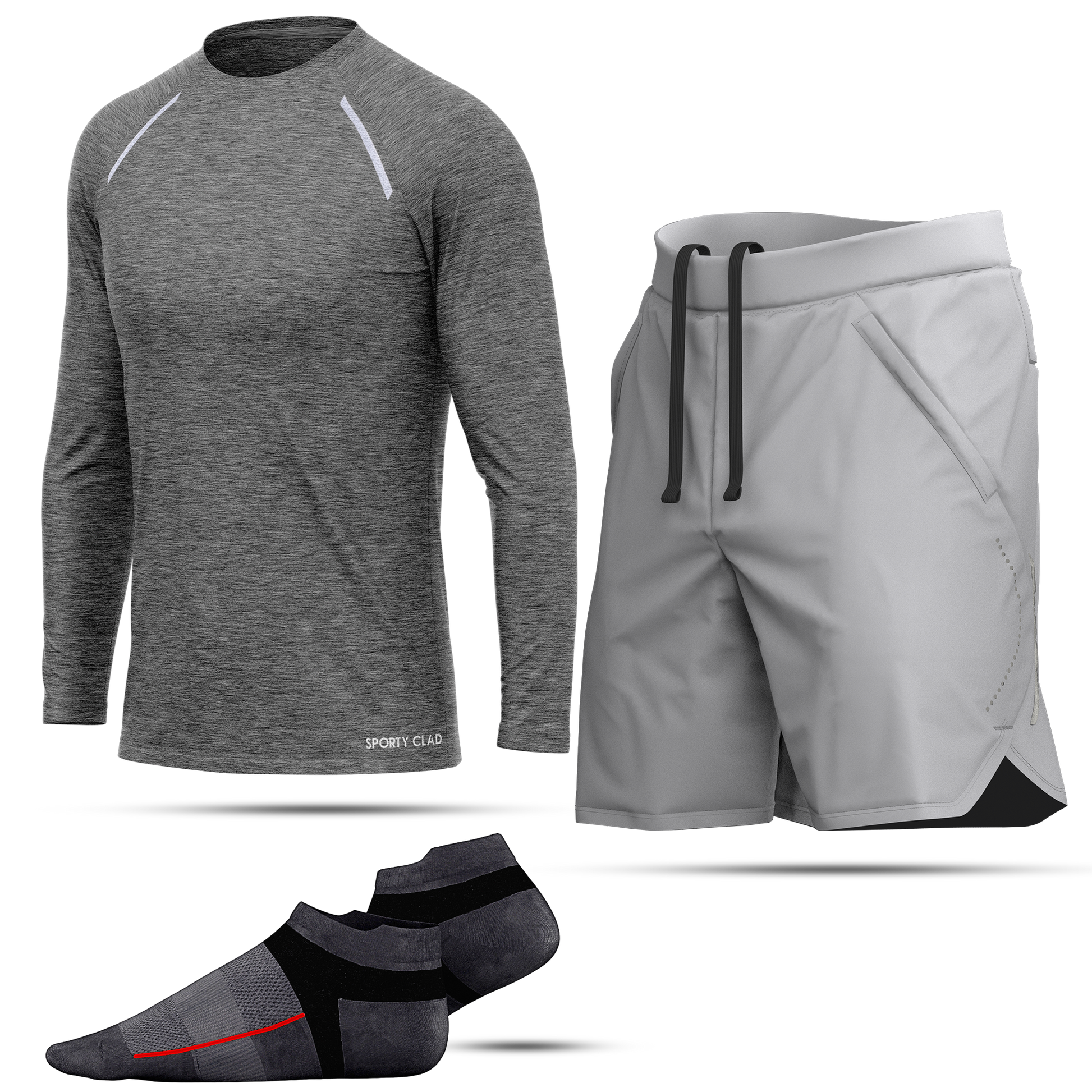 Men's Light Grey Long Sleeve T-Shirt, Sports Shorts & Socks Set