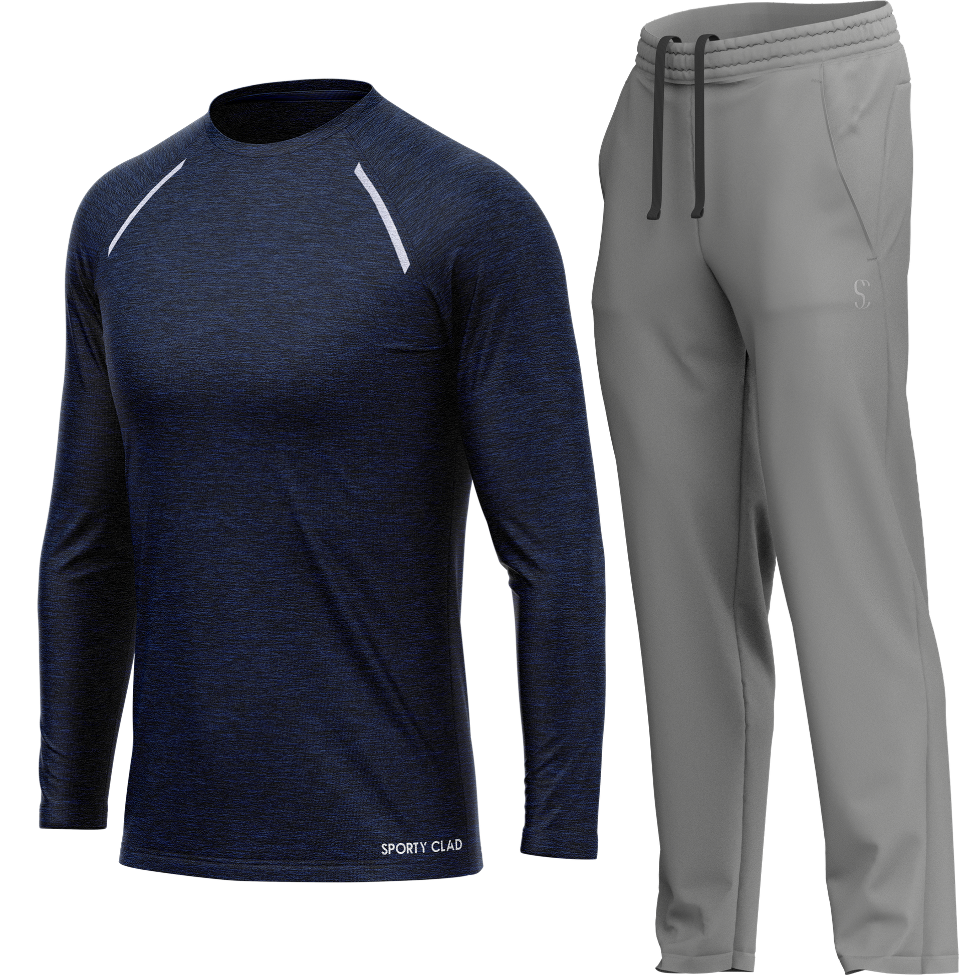 Men's Navy Blue Long Sleeve T Shirt & Light Grey Joggers Set