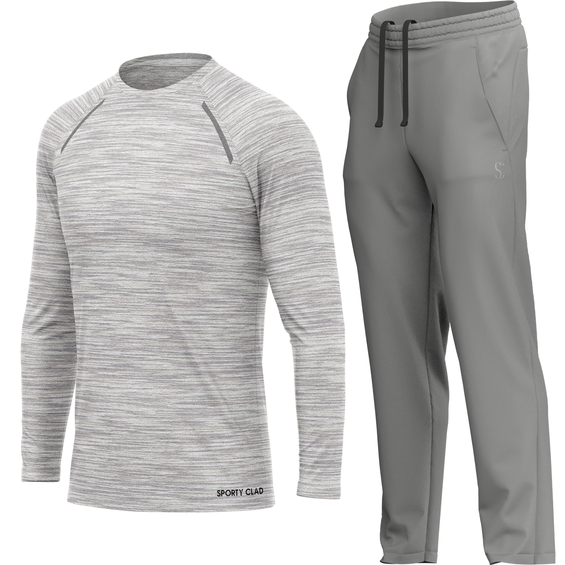 Men's White Long Sleeve T Shirt & Light Grey Joggers Set