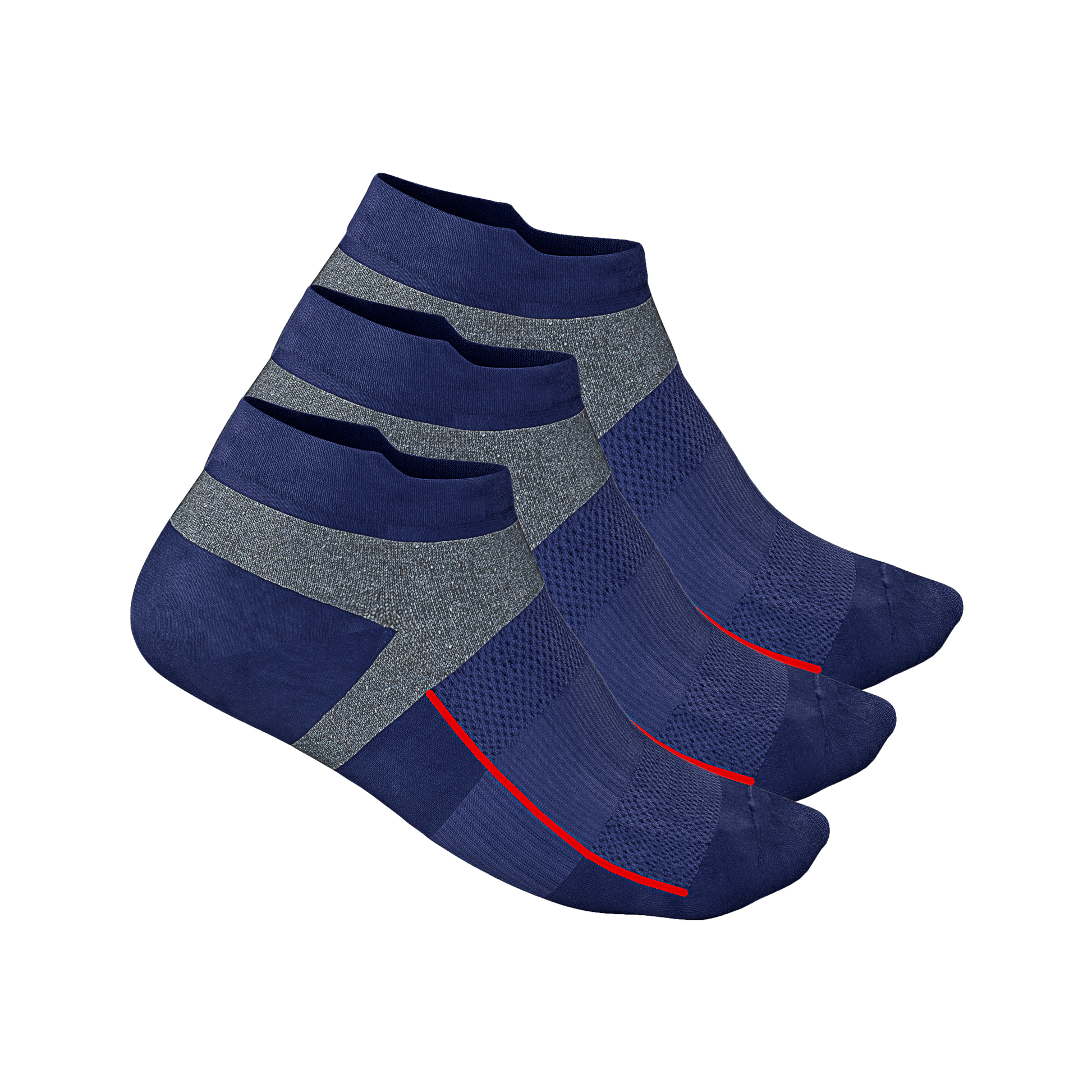 Navy Blue Running No Show Cushioned Socks (3 Pairs)